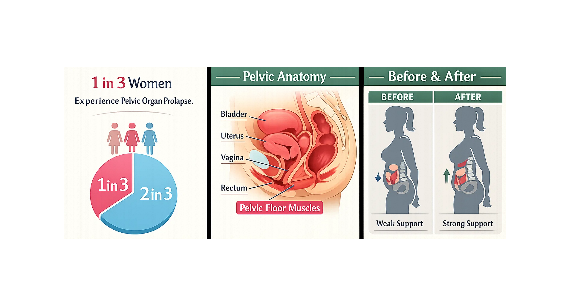 - Postpartum leakage, which can impact confidence and quality of life